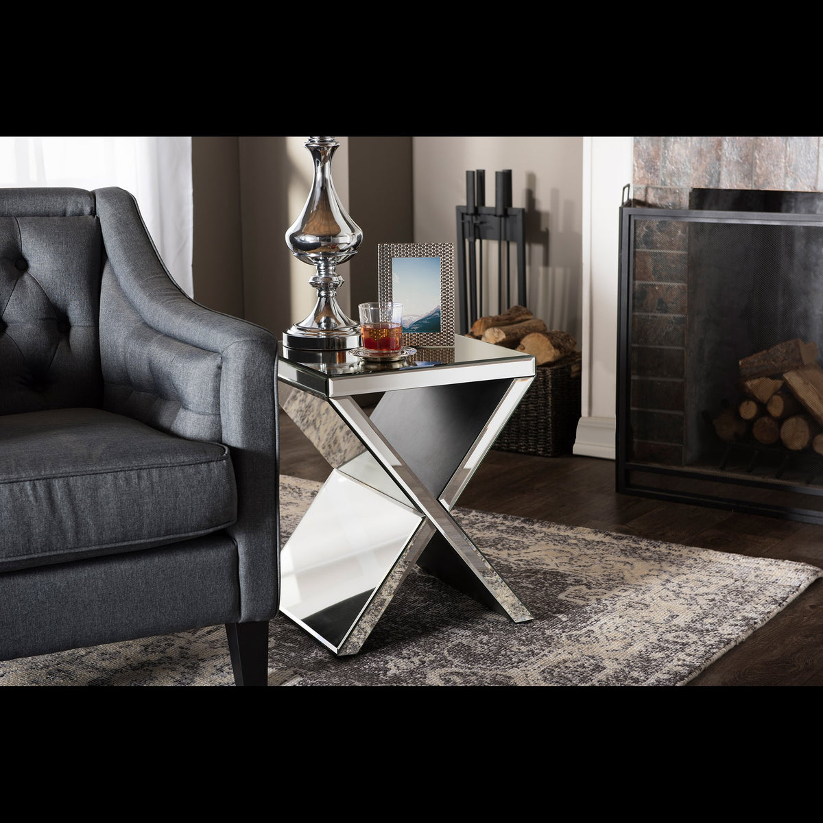 Brighten up even the darkest day with the modern and contemporary mirrored furniture. Stylish contemporary designs and eye-catching reflective surfaces make this accent table that can not be ignored; a true asset to any modern home. Featuring Hollywood glamour style, this X-base mirrored accent table will emphasize the luminosity in the room, adding atmosphere and elegance. Make the most of your lamp by sitting atop the sparkling surface of the Morris Mirrored Accent Table. Handcrafted of wood composite, mirrored glass and mirrored laminate, the Morris accent table creates a highly modern and unusual look which is sure to be noticed and admired by all. Thanks to the smooth nature of this mirrored table, it is super easy to maintain a pristine look. Simply wipe over with a damp cloth and every so often use a hint of polish to really make your table shine. There’s no need to worry about a fiddly assembly as this accent table will be delivered fully assembled. Made in China, the occasional table will be a great choice for contemporary elegance.