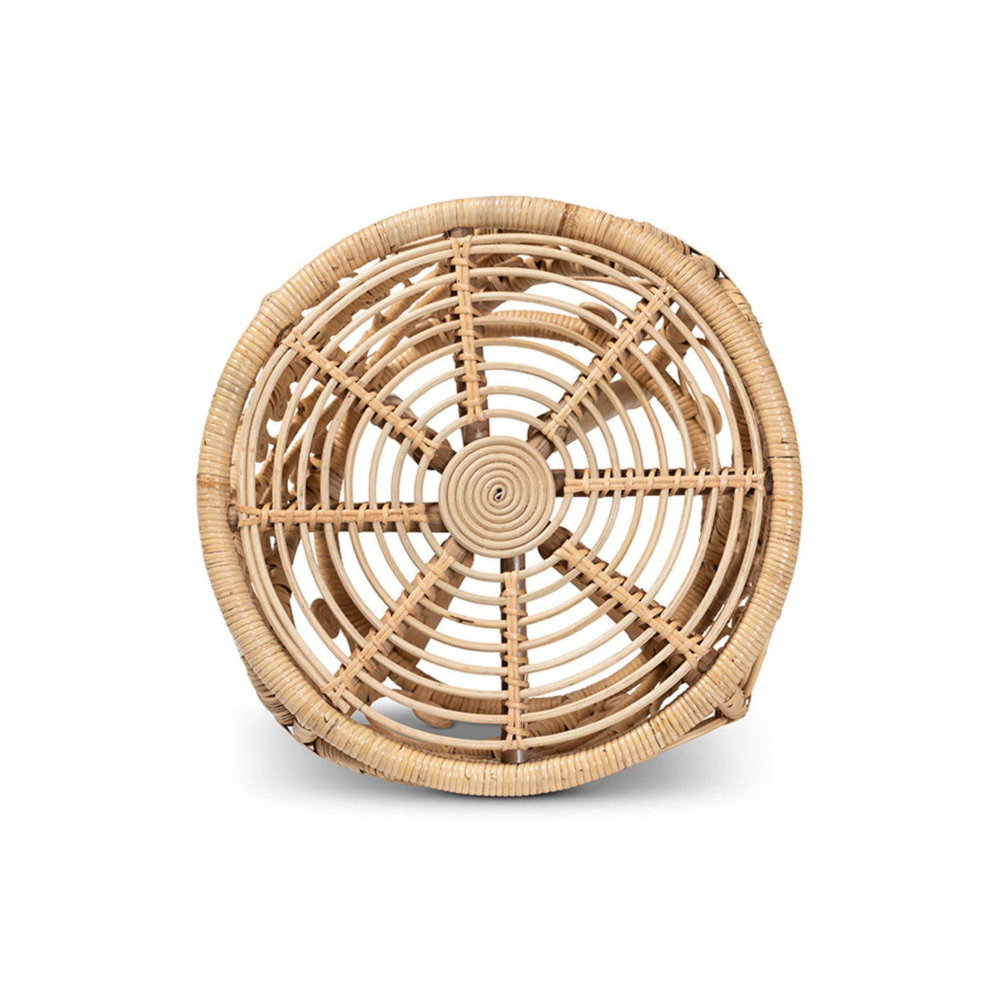 - Bohemian end table - Constructed from Natural Rattan - Round tabletop - Angled legs - Woven embellishments - Fully assembled - Made in Indonesia.