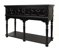 Perfect To Store Your Belongings, This Storage Console, Constructed Sturdily From Pine Wood, Provides You 3 Drawers With Open Bottom Shelf. Supported On Bun Feet, It Has Turned Legs Support With Molded Details All Over It. Featuring X Shaped Design, It Has Antique Metal Pulls For Access.