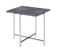 Benjara Contemporary Marble Top End Table With Trestle Base, Gray And Silver