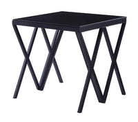This End Table Adds A Perfect Look To Your Living Room. It Is Sturdily Made Up Of Metal And Has A Fine Finish Of Glass. It Has A Square Top Which Can Be Used To Keep Your Magazine, Books And Small Items Near Your Sofa. It Has A V Shaped Geometric Figured Base And A Metal Frame.