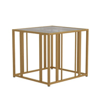 Benjara Glass Top End Table With Metal Tubular Base, Brass