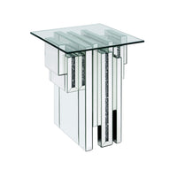Catch The Attention Of Your Guests And Visitors At Your Home By Bringing In This Beautiful End Table. It Features A Stylish Body Covered With Mirror Panels And Showcases Faux Gemstone Accents That Boosts Up Its Charm. It Is Incorporated With 4Mm Clear Glass Top.