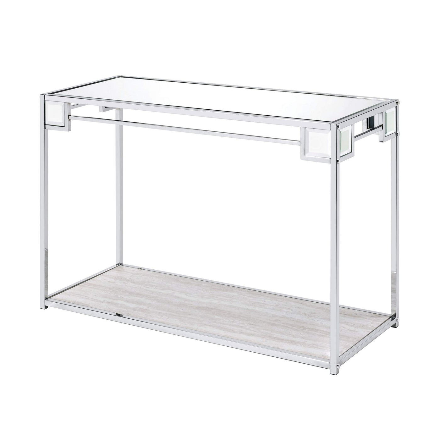 Adds Function And Style To Your Living Space With The Inclusion Of This Console Table. It Strikes A Slim Rectangular Silhouette With Mirrored Inserted Top Provides An Easy To Clean Platform For Framed Photos Or A Stylish Lamp. Accenting Your Entryway To Providing A Place To Leave Those Hard To Find Keys, Console Tables Are A Great Addition To Any Decor.