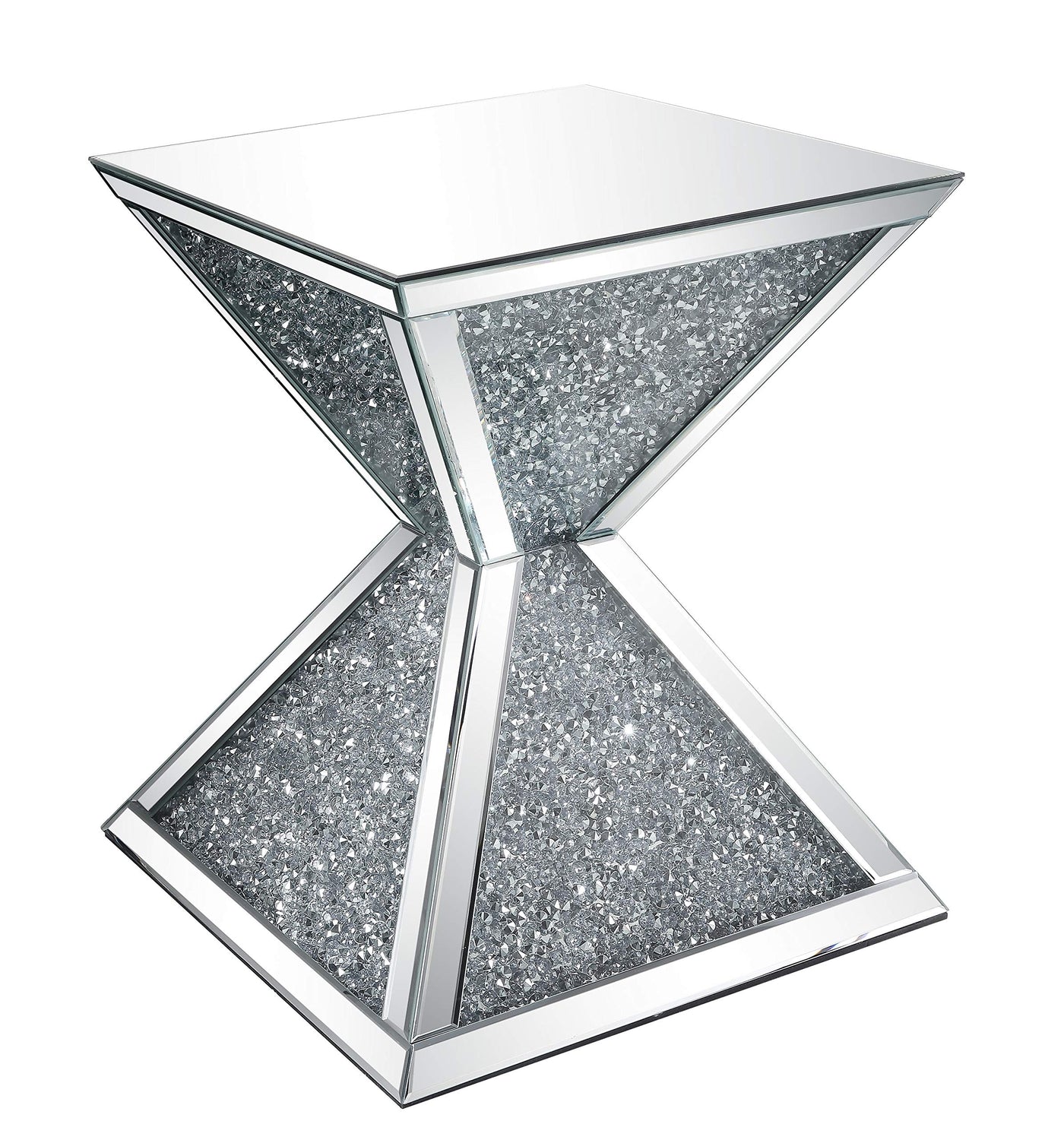 Uplift Your Living Room And Make It Attractive By Introducing This Sparkling Metal, Faux Crystals And Mirror Base With Hourglass Shaped End Table To Your Home. This Occasional Table Will Serve The Best To Magnify Your Home Decor Experience And Will Also Make Your Living Room The Center Of Attraction.