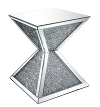 Benjara Sparkling End Table With Faux Diamonds Inlay, Silver And Clear