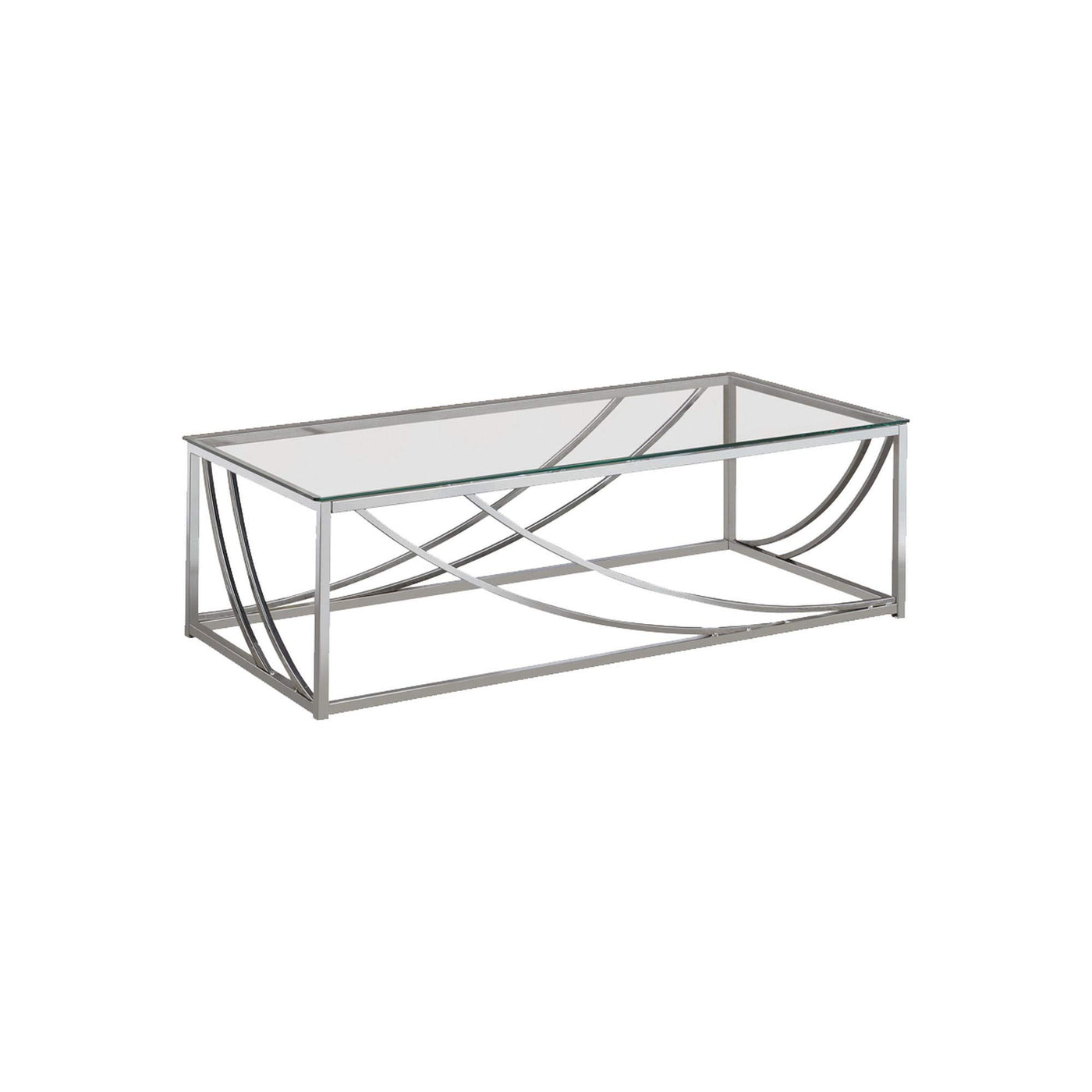 Rejuvenate Your Living Space By Bringing Home This Contemporary Style Coffee Table Which Comes With Tempered Glass Topping And Comes With Curved Metal Design On Front And Side Panels. Supported On Tubular Legs, It Is Accented With Chrome Finish.