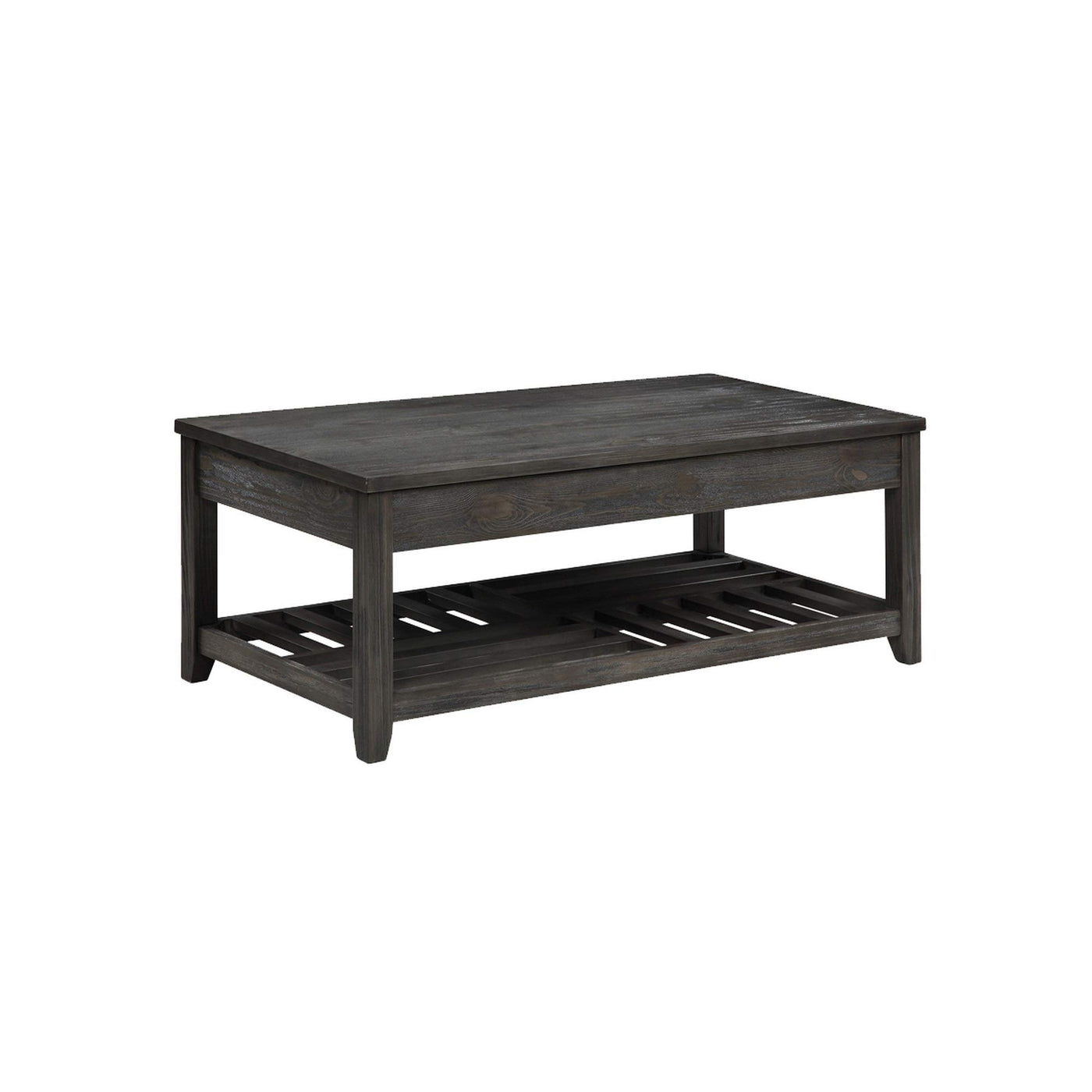 Benjara Transitional Style Wooden Coffee Table With Open Slatted Shelf, Gray