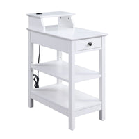 Amalgamate Your Existing Decor Setting By Bringing In This Coveted Contemporary Style Side Table, Featuring Spacious Storage With 1 Drawer And 3 Open Compartments. Incorporated With Usb Charging Dock And Supported On Straight Legs, It Is Constructed From The Combination Of Pine Wood And Mdf.