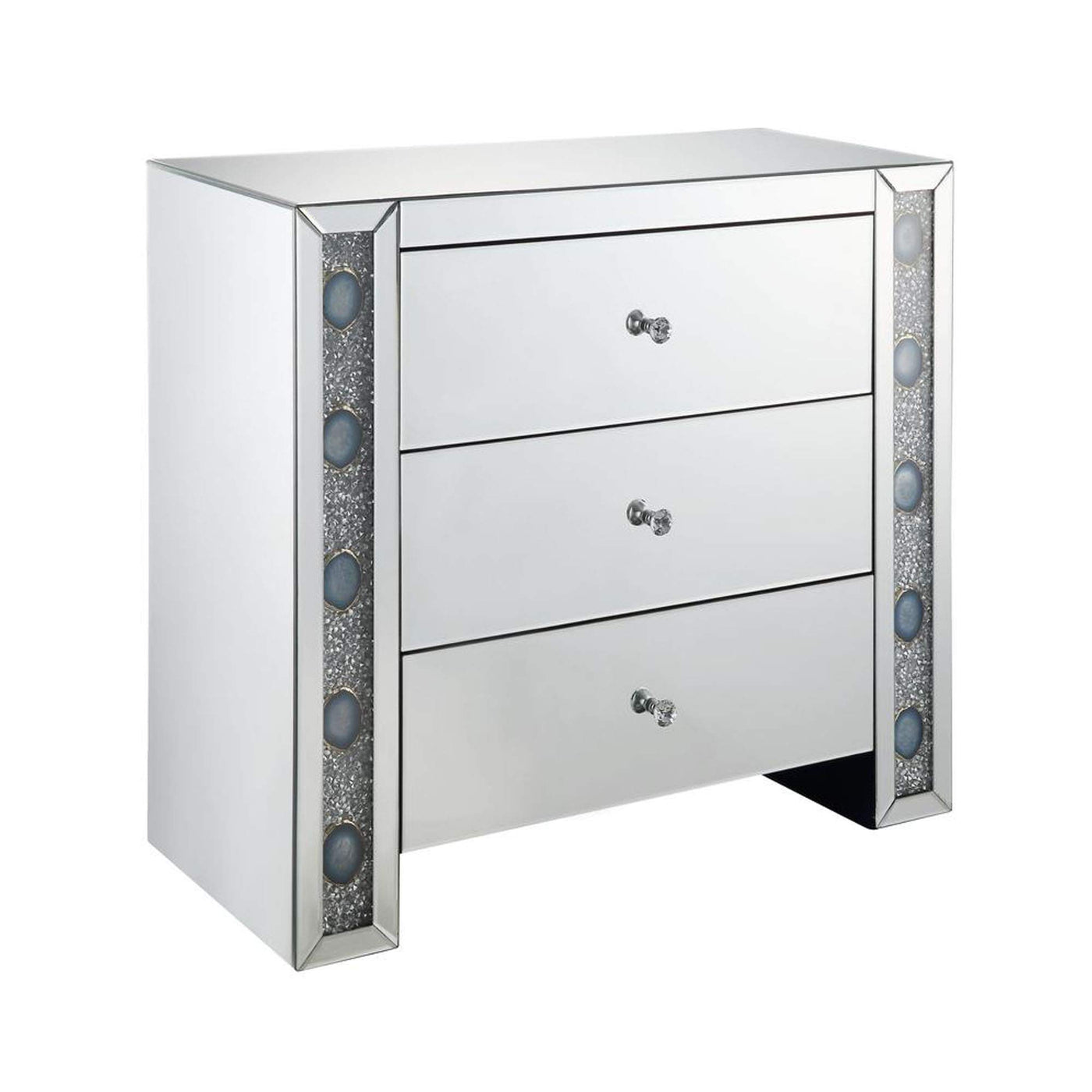 Benjara Wooden Framed Mirrored Console Table With Three Drawers And Faux Agate Accents, Silver