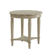 The French Country-Inspired Fordon Occasional End Table Is Gracefully Designed And Made From Quality Materials. Scalloped Round Table Top, Turned Legs And A Bottom Shelf, Each Piece Is Carefully Crafted While Superb Functionality Is Kept In Mind. This Occasional Collection Is Available In Both Of Coffee And End Table, In Antiqued White.
