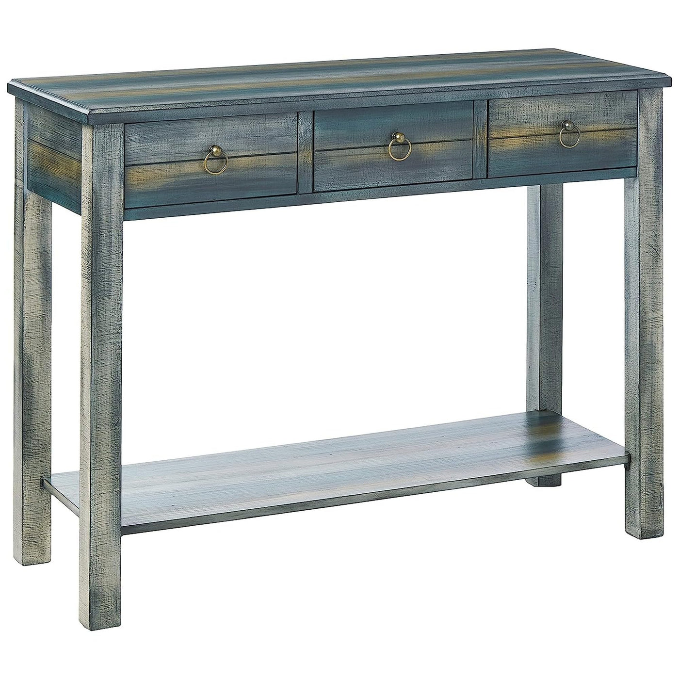 Benzara Glancio Beautiful Console Table, Antique Oak/Teal Blue