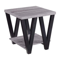 Lend Your Living Area A Retro Look With This Modish End Table. Its Rustic Weathered Gray Finish Lends Antique Mid-Century Charm To Your Interiors. Featuring An Antique Gray And Black Finish And An Exceptional 'V' Patterned Zig-Zag Base, This Table Is The Perfect Addition For Any Living Room To Create Slight Transformation. It Also Renders An Open Bottom Shelf For Additional Display Or Storage.