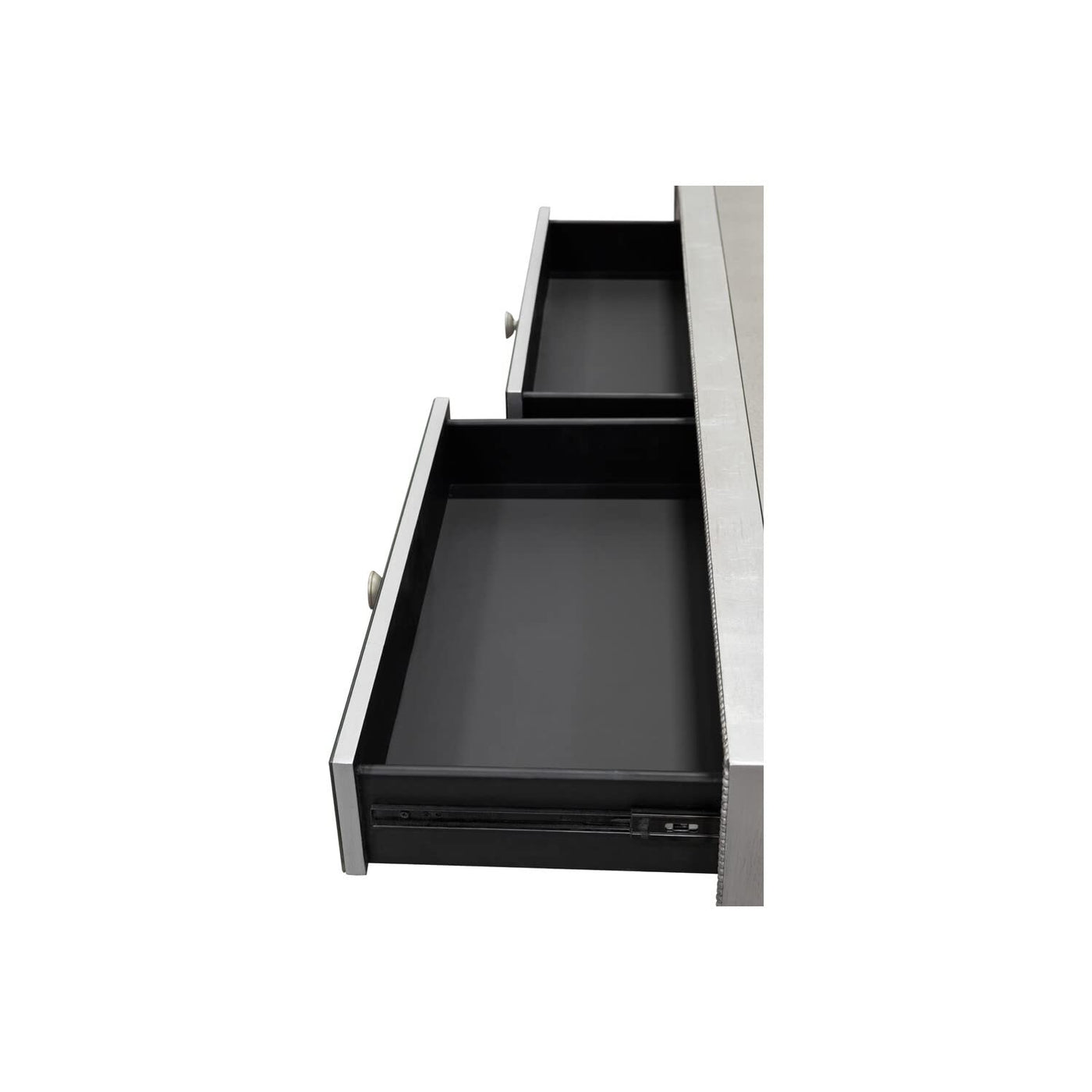 - Material: Solid Wood, Metal Rails, Mirrored Inlays