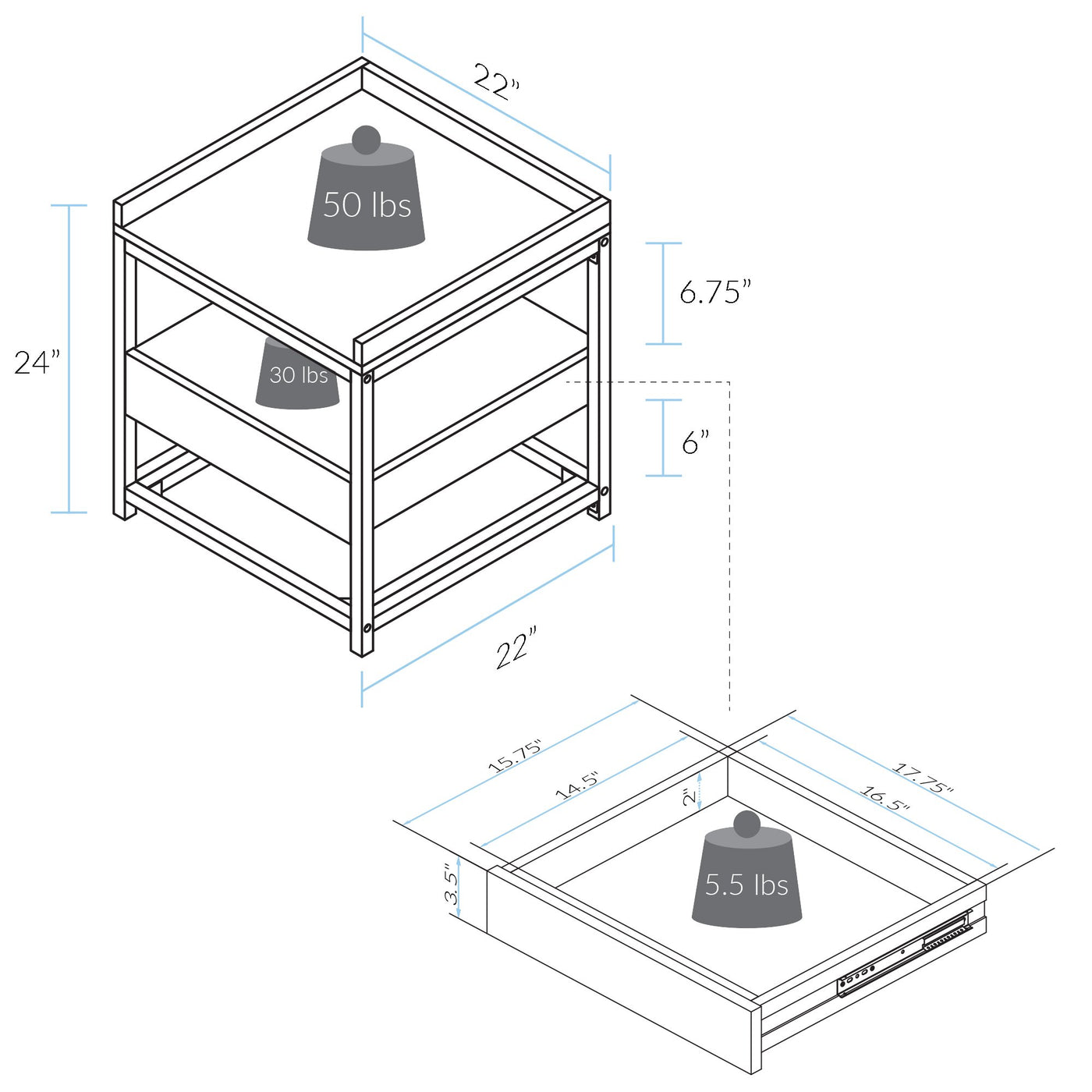 Modern, Simple, And Stylish, Our Horizon End Table Was Developed For Those Who Appreciate Balance As Much As They Appreciate A Space That'S Clean And Organized. Its Carefully Executed Two Tone Design Uses A Matte Black Frame To Showcase The Table'S Rich Mocha Finish. The Top Features A Short Border On 3 Sides For Unique Appeal That Also Prevents Tipping And Spills. The Open Middle Shelf And Smooth Sliding Drawer Provide Plenty Of Space To Store Your Living Or Bedroom Essentials. Think Convenient Storage Within Arms Reach. Perfect For Tight Apartments, Bedrooms, Home Offices, And More. Made From Solid Wood For Natural Beauty And Durability That Can Withstand Constant Use.