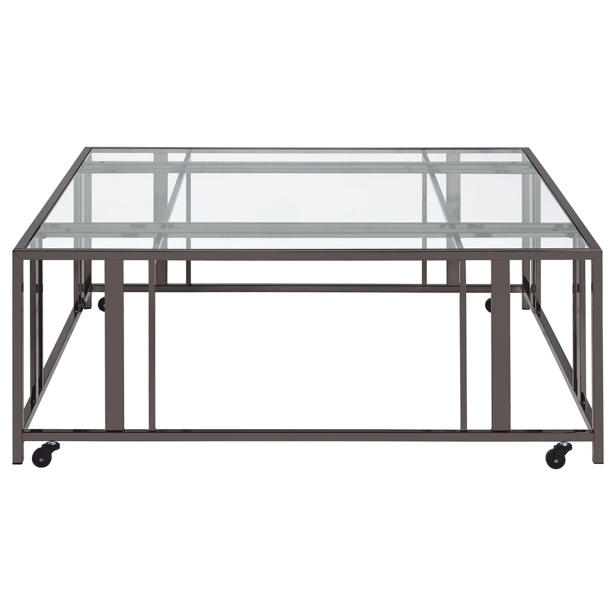 Coaster Home Furnishings Adri Square Glass Top Coffee Table with Casters Black Nickel