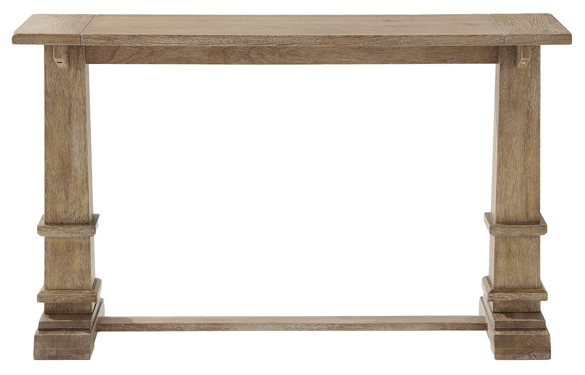Add laid-back elegance to your entryway or living room with the Joanna Console Table. Combining a rustic finish with a classic farmhouse design, this stately console table adds style wherever it goes. The rectangular tabletop is enhanced by large pedestal columns with decorative trim on the trestle base. Ready to be used as a sofa table or a foyer drop-zone, the Joanna Console Table brings beauty to any room of your home.