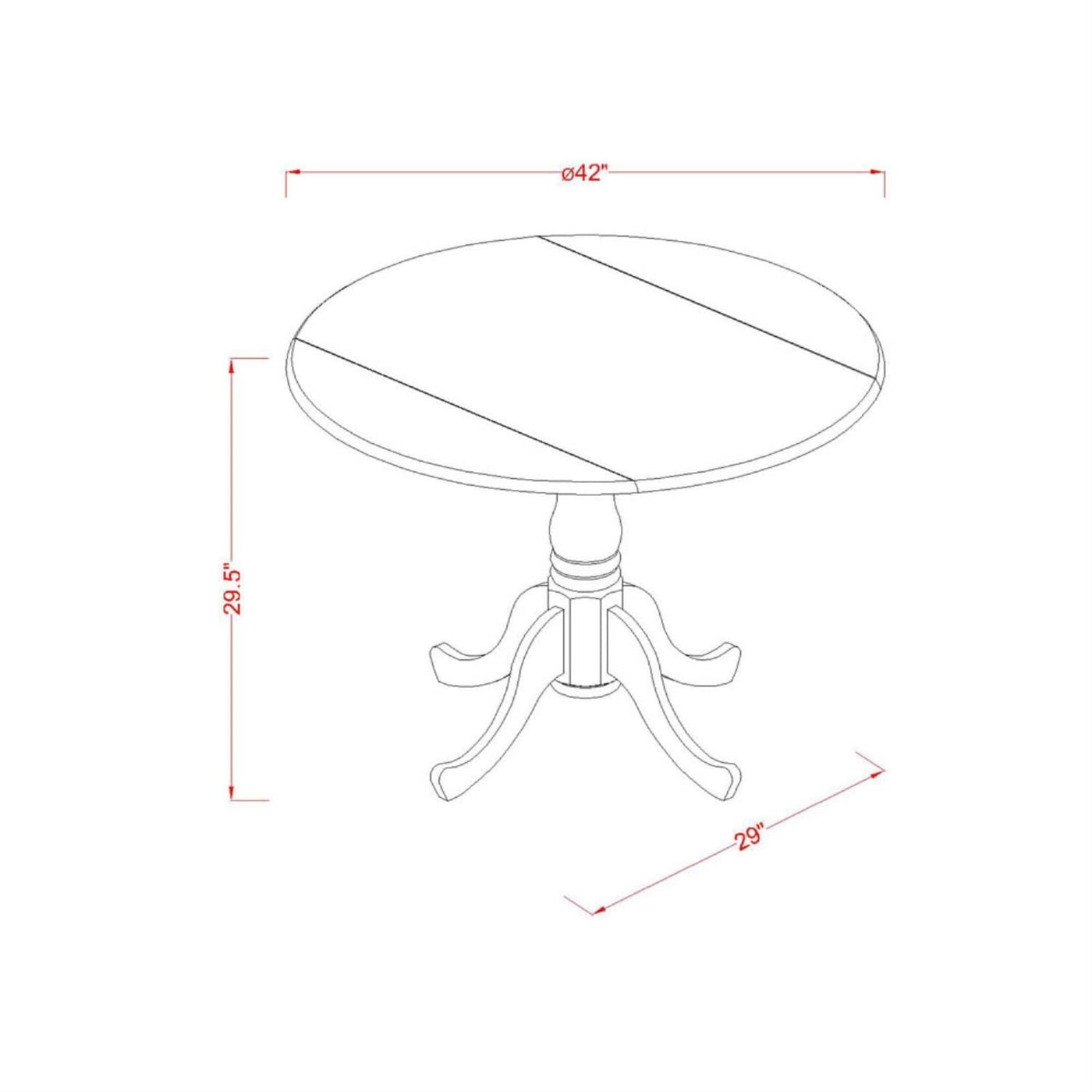 EAST WEST FURNITURE - DLT-ESP-TP - DUBLIN ROUND WOODEN DINING TABLEEnhance the elegance of your dining room with our exquisite Pedestal modern Dining Table that exudes style. Crafted from premium-quality Espresso Asian Hardwood (Rubber Wood), the body of this trendy wood kitchen table boasts remarkable sturdiness and stability. The top surface of this round kitchen table features a superior Espresso finish that provides a stunning appearance. The contemporary design of this round wooden kitchen table elevates the aesthetic appeal of any dining room. Built with a heavy-duty solid wood structure and a modern round design, this wood round wooden dining table combines sophistication with sturdy construction, ensuring its durability. Its compact size makes it easy to carry, clean, and assemble, and it seamlessly blends with any room decor. This friendly and robust pedestal wood dining table is an ideal choice for a delightful dining experience with your loved ones.PRODUCT FEATURES: Table Design: Round Pedestal Style Table Top color: Espresso Pedestal Legs color: Espresso Round Wooden Dining Table Dimensions: Length: 42; Width: 42; Height: 29.5.5