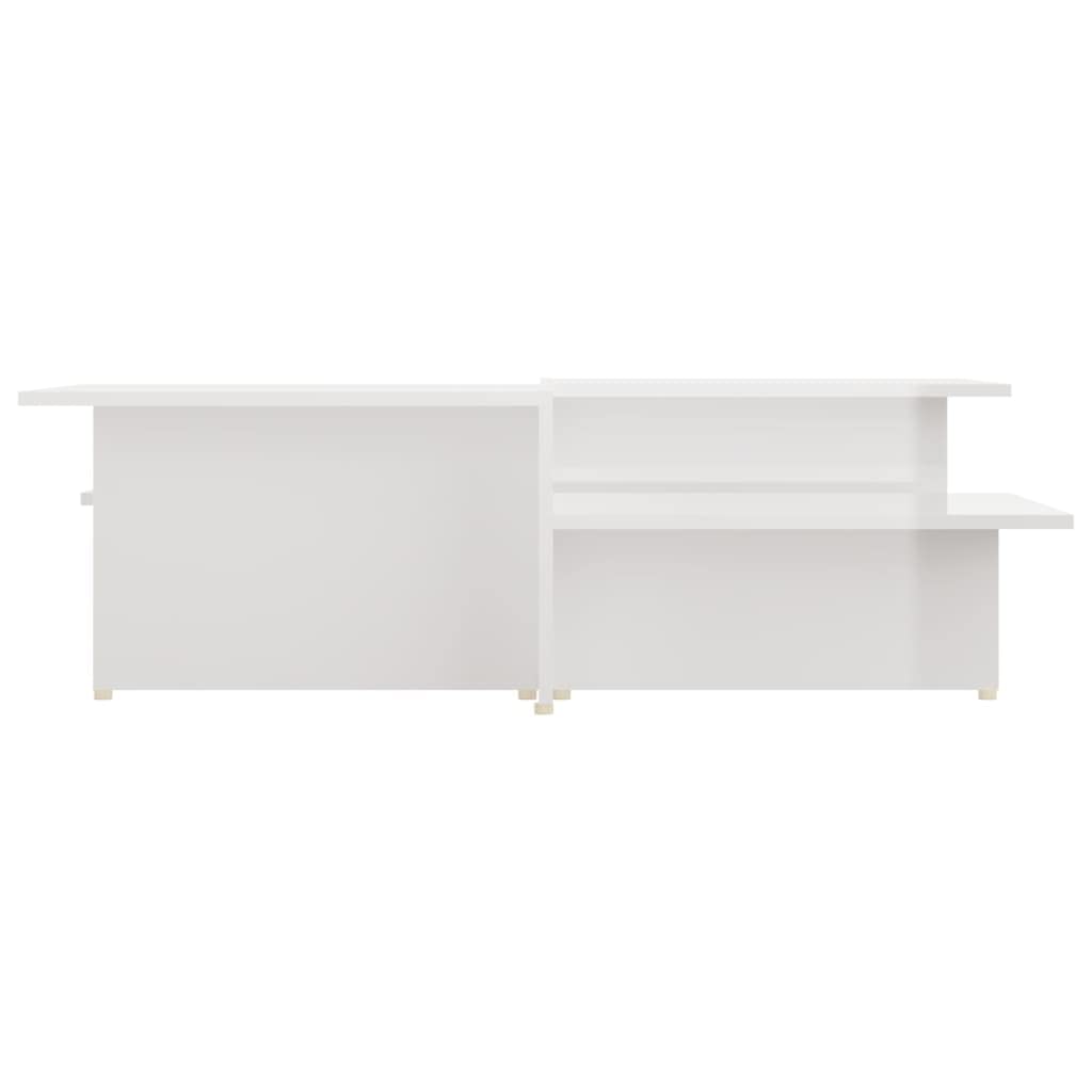 Looking for something more refined and attractive for your home The coffee table is an optimal choice for you The side table is made of chipboard, making it sturdy and stable. The table tops in two different heights offer you ample space to store your essentials well organized and within reach. In addition, it is easy to clean with a damp cloth. Colour: glossy white. Material: chipboard. Dimensions (each): 111.5 x 50 x 33 cm (L x W x H).