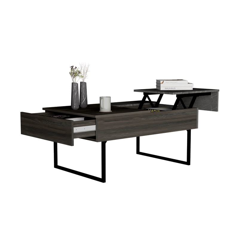 HomeRoots 39" Onyx and Carbon Rectangular Lift Top Coffee Table with Drawer