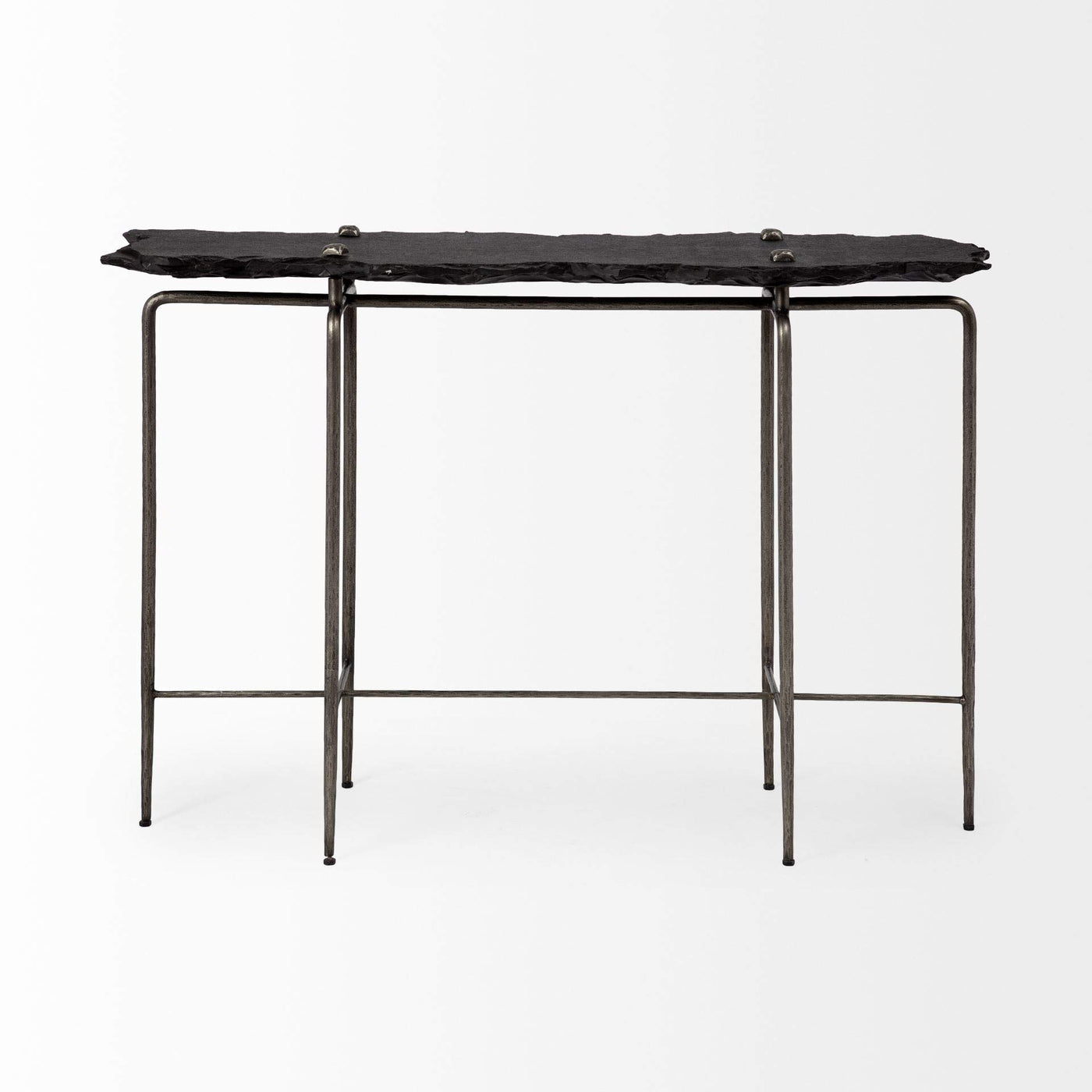 HomeRoots Black, Antiqued Brass Slate, Metal Black Slate Console Table with Iron Base