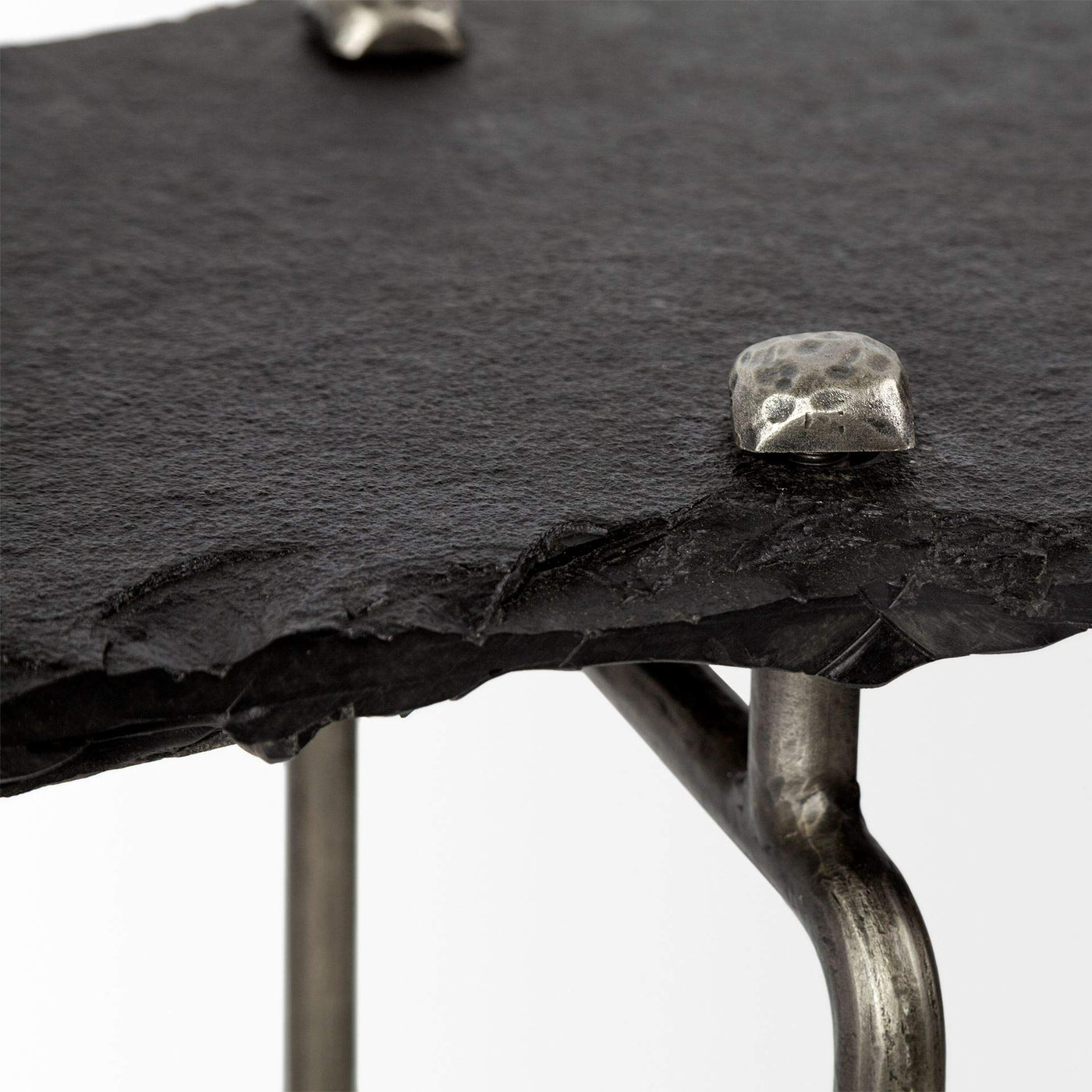 This is a stylish, slate-top console table featuring a six-legged, iron base. |Black Slate Console Table With Iron Base