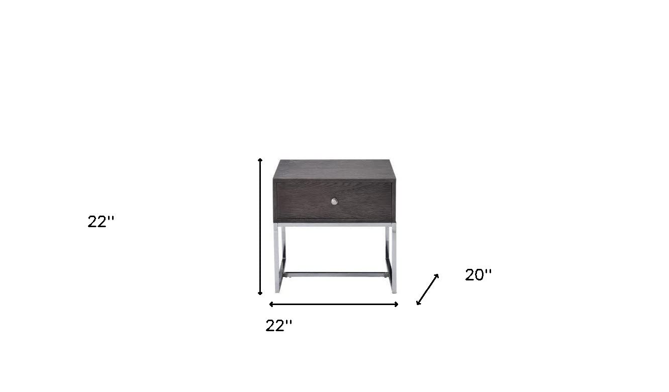 Distinctive in style, the 22-Inch Chrome and Gray Oak Fabricated Rectangular Wooden Side Table with Drawer exudes versatile charm. This multifunctional side or side table is built to last with manufactured wood. Includes a single, easy-to-pull drawer for convenient storage of life's small essentials. An ideal place to place your snacks and drinks, and a place to store your lamp, frames or other accessories. This versatile table is a great accent for almost any room. 22"H x 22"W x 20"D