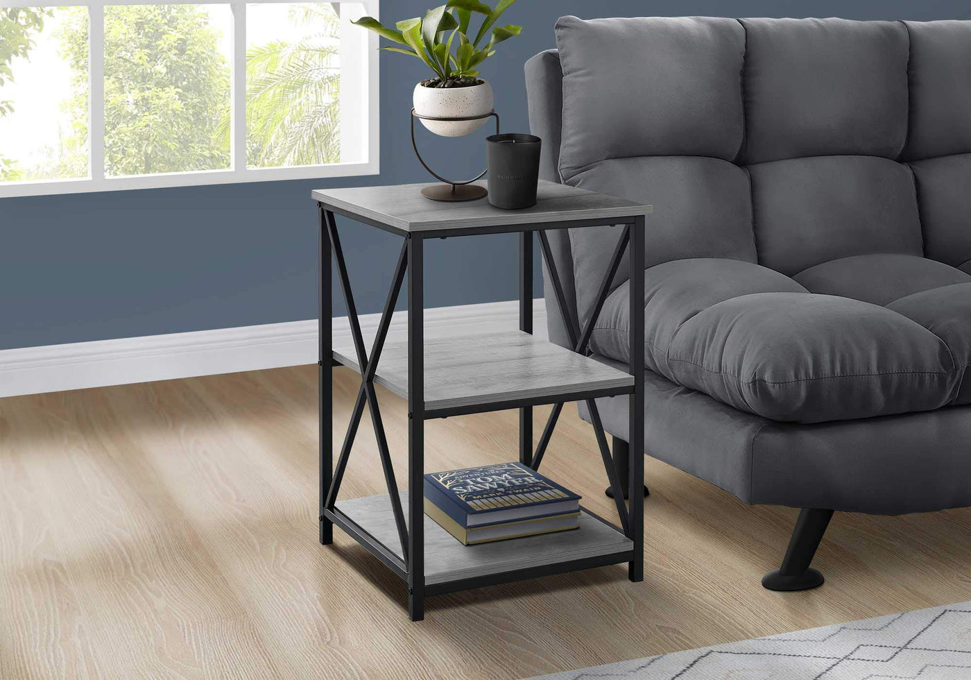 HomeRoots Grey,Black Metal,Particle Board 26" Rectangular Grey Black Metal Accent Table designed for practical use