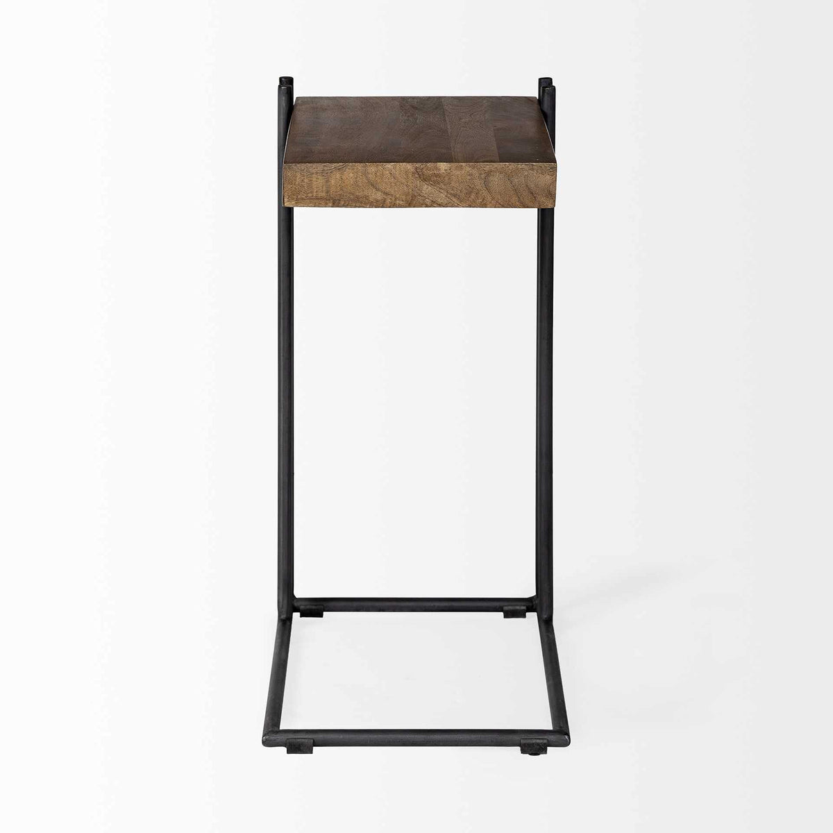 HomeRoots L-Shaped Medium Brown Wood Side Table with Black Metal Frame