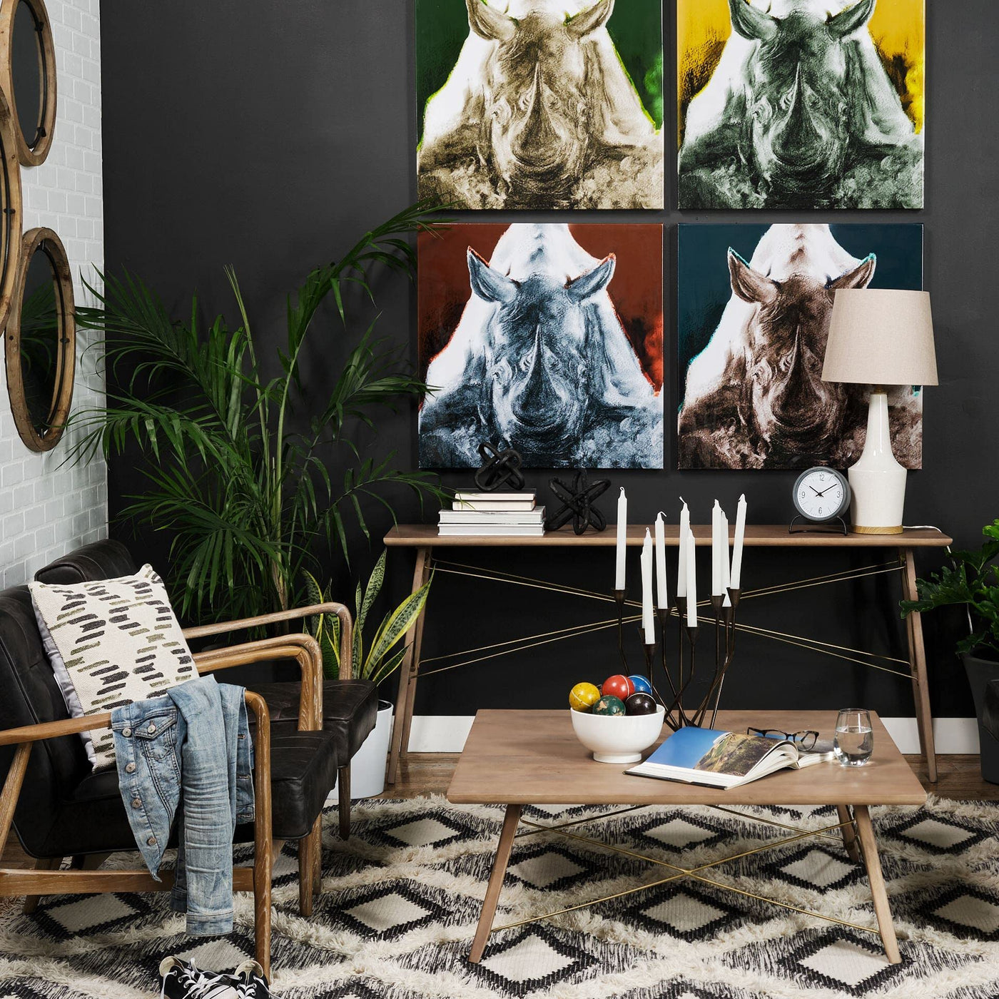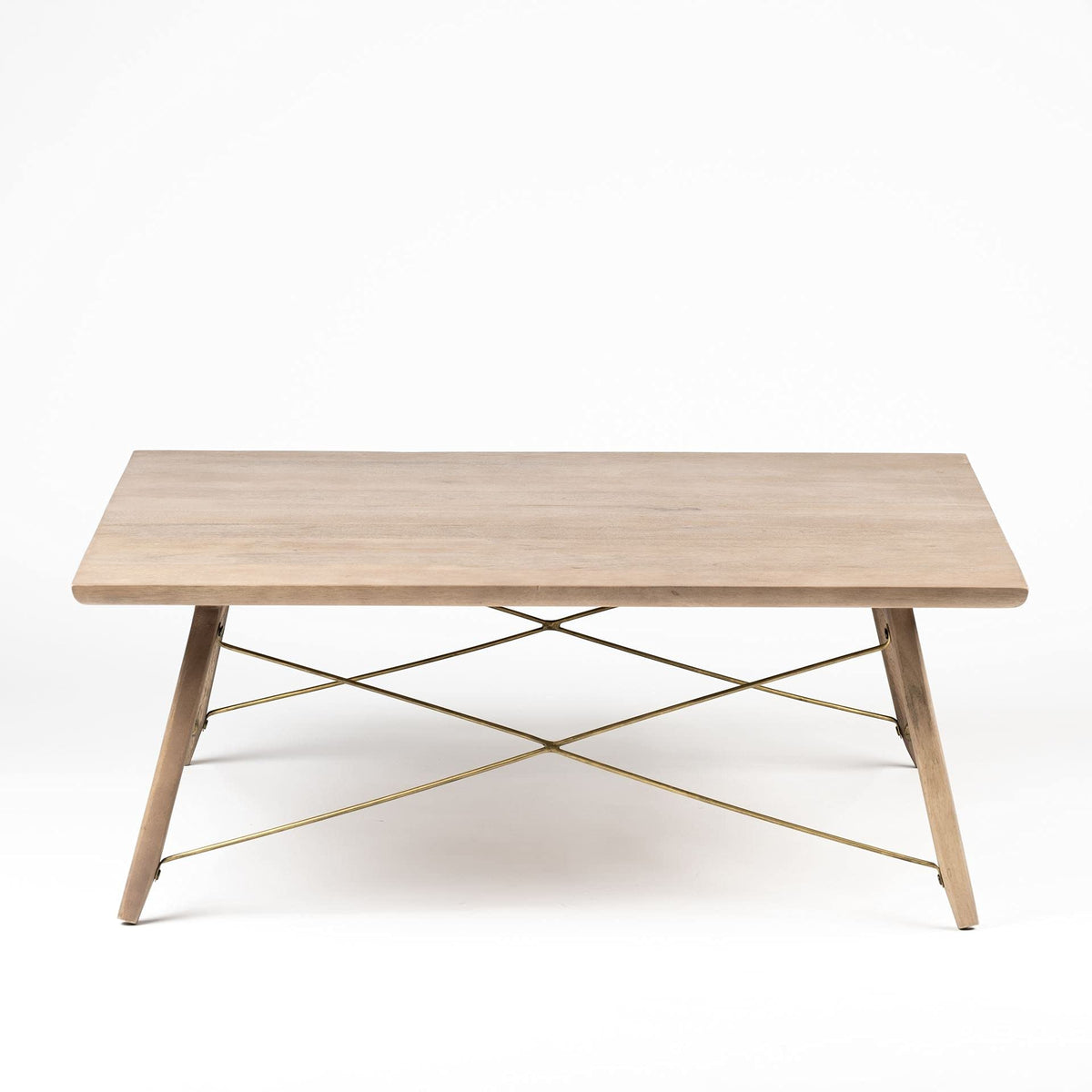 HomeRoots Light Brown Square Solid Wood Top & Legs Coffee Table w/Metal Bracing