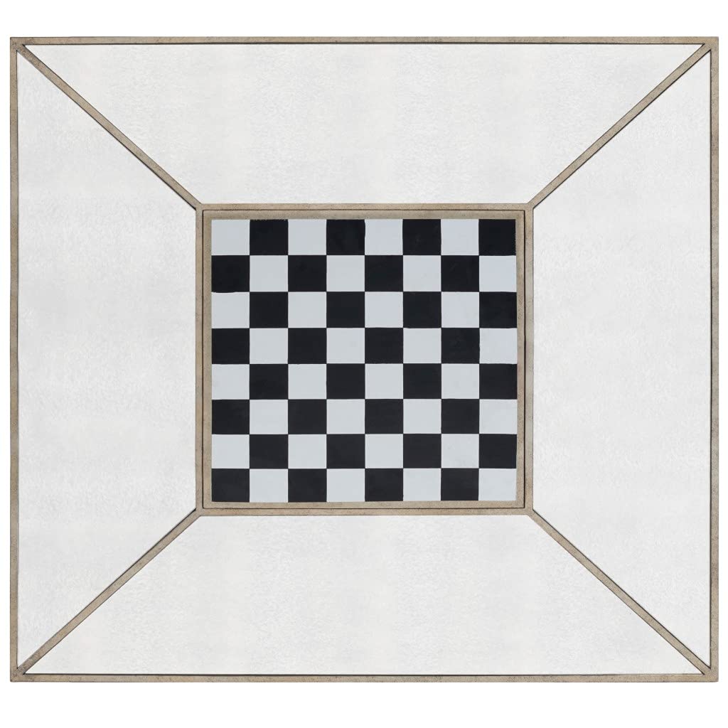 Our iconic game table has gotten a makeover and is sure to be a conversation starter. Created with Birch Wood solids and trimmed in an antique pewter finish, this stunning mirrored game table will certainly be the center of attention in the room. The center section of the table also serves as a platform for a game of checkers or chess when it's turned over.