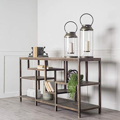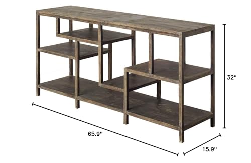 HomeRoots Solid Mango Wood Finish Console Table with Multi Level Shelf