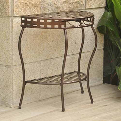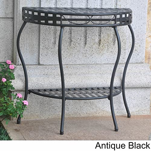 International Caravan Santa Fe Iron Nailhead 2-Tier Half Moon Shaped TableAdd a timeless touch to your home or garden with this half moon shaped wall table. This two tier table is ideal for use as a display for your home decor. Has a powdercoat finish that is durable and weather resistant.
