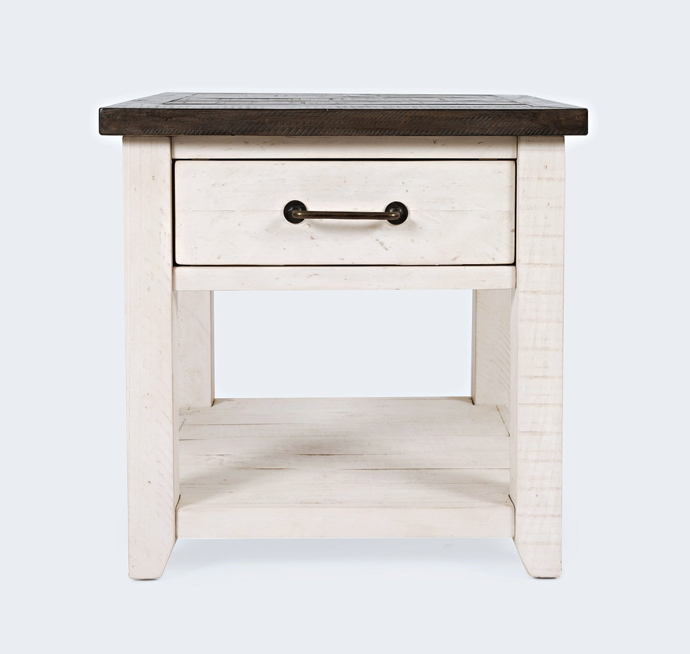 Jofran Madison County Reclaimed Solid Wood Rustic Farmhouse Harris End Table with Drawer and Shelf, Vintage White