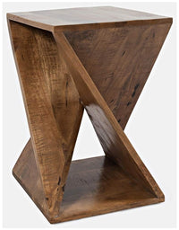 Arriving fully assembled this end table is handcrafted from solid wood and brings the latest in innovative modern design into your home Sharp sleek angles combined with a natural wood grain finish make this table a standout anywhere you choose to place it The deep coloring in the finish allows you to see every natural variation in the wood while the complex design celebrates the hand-crafted artisan look of the piece