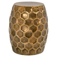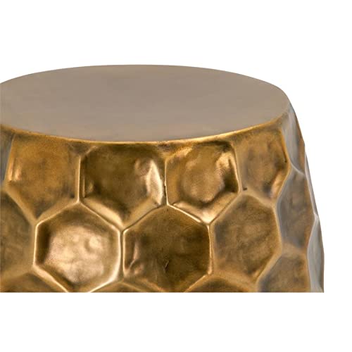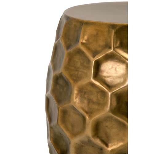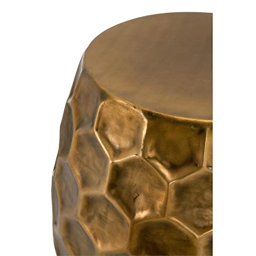 Transitional Style End Table Featuring Three Dimensional Hexagon Pattern In Distressed Bronze Finish.