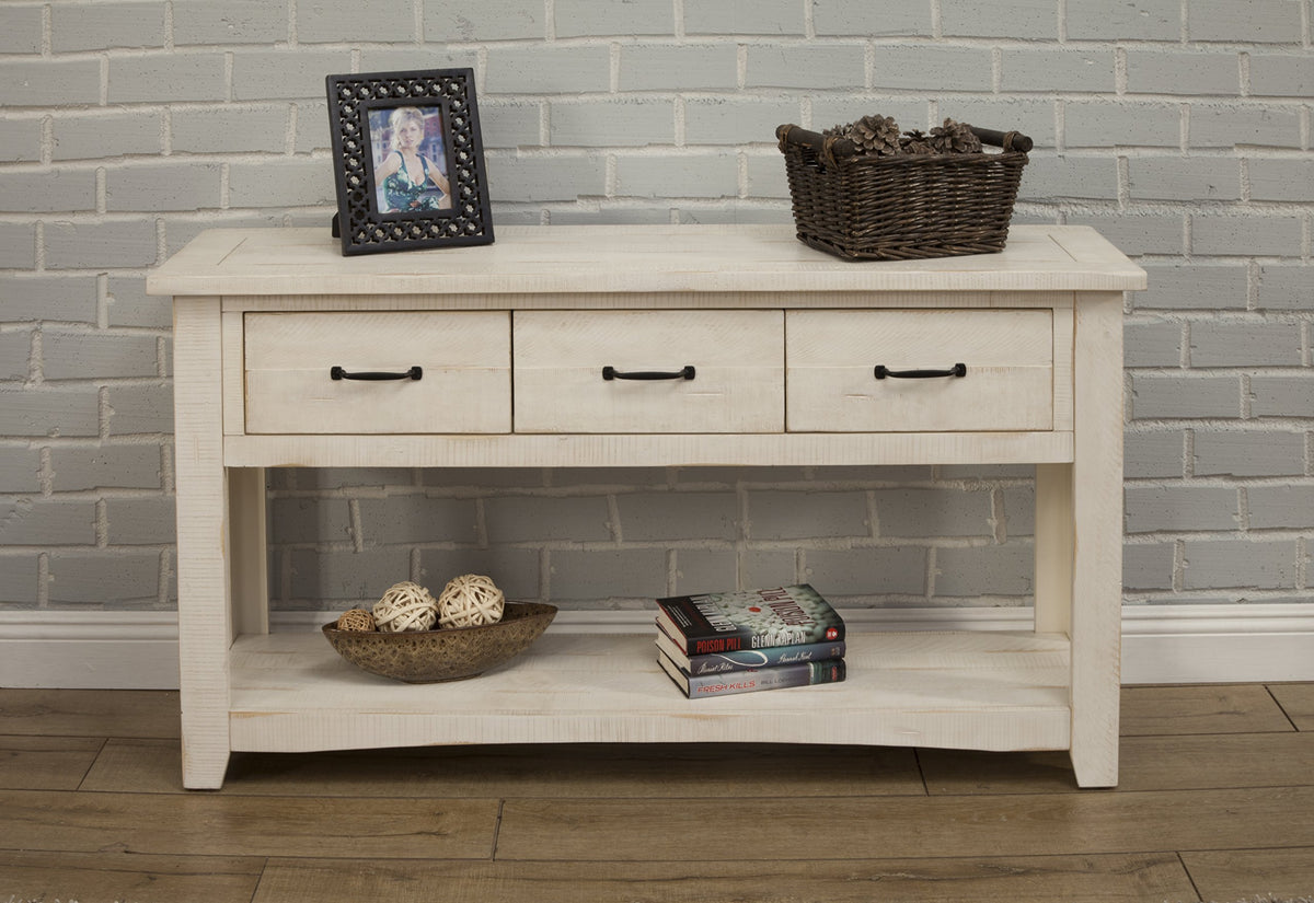 The Sierra Coffee Table Is A Gorgeous Rustic Style Coffee Table. Constructed Of Solid Pine In An Grey Pine Finish That Offers Just The Right Amount Of Distressing That Can Blend Easily With Other Rustic, Distressed, Warehouse, Farmhouse, Or Loft Looks. The Table Features Two Drawers That Pull All The Way Through Allowing For Access On Both Sides. The Drawers Offer Plenty Of Space For Storing Tv Controllers, Magazines, Puzzles, Board Games And Other Items. The Bar Pulls On The Drawers Are Custom Finished In Black To Complement The Tables Overall Rustic And Distressed Look. A Bottom Shelf Is Offered For Additional Storage And Complemented By Curved Bottom Base Moldings. Hidden Caster Wheels Are Included Allowing You To Move The Table To Different Positions Which Is Perfect For A Motion Sofa Or Chair. Assembled Product Dimensions: 50" W X 28" D X 19" H. Product Materials: Solid New Zealand Pine. Easy Assembly - Top And Drawer Unit Is Pre-Assembled, Only Needing To Attach The Legs And Bottom Shelf.