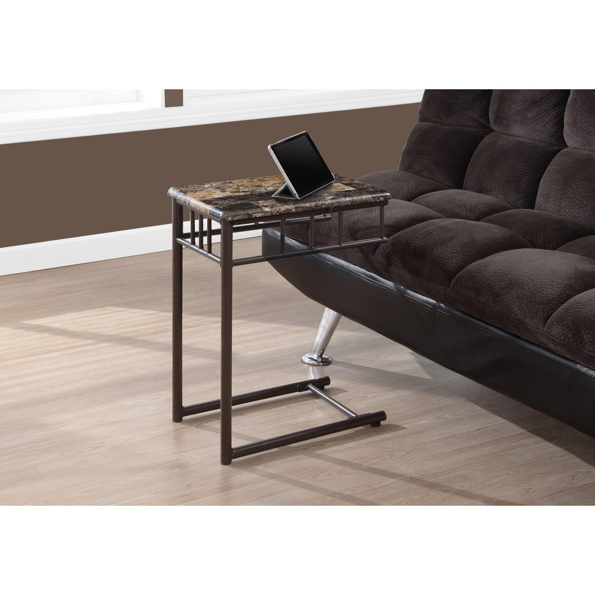 Monarch Specialties 3043, C-Shaped, End, Side, Snack, Living Room, Bedroom, Laminate, Brown Look, Contemporary, Modern Accent Table-Espresso Marble/Bronze Metal, 12" L X 18" W X 24" H, Cappuccino