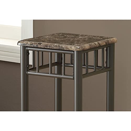 Monarch Specialties 3044 Accent Table, Side, End, Plant Stand, Square, Living Room, Bedroom, Metal, Laminate, Brown Marble Look, Transitional Espresso Bronze L X 12" W X 28" H, Cappuccino