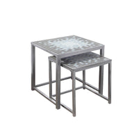 Monarch Specialties 3141 Nesting Table, Set Of 2, Side, End, Accent, Living Room, Bedroom, Metal, Tile, Blue, Grey, Transitional Table-2Pcs Set Top/Silver, 20" L X 20" W X 20" H