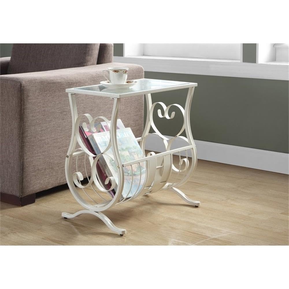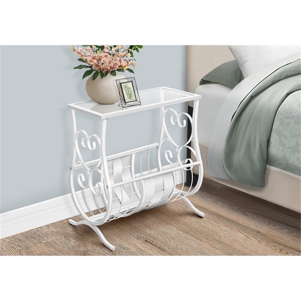 This Elegant Magazine Table Is Both Stylish And Multi-Functional. It Features An Intricate Weaved Metal Rack With Curved Bars To Hold Your Magazines And A Tempered Glass Top Where You Can Place Your Coffee Cup As You Read The Latest Novel. With Its Sturdy Satin Black Metal Base, This Piece Is One Of A Kind.