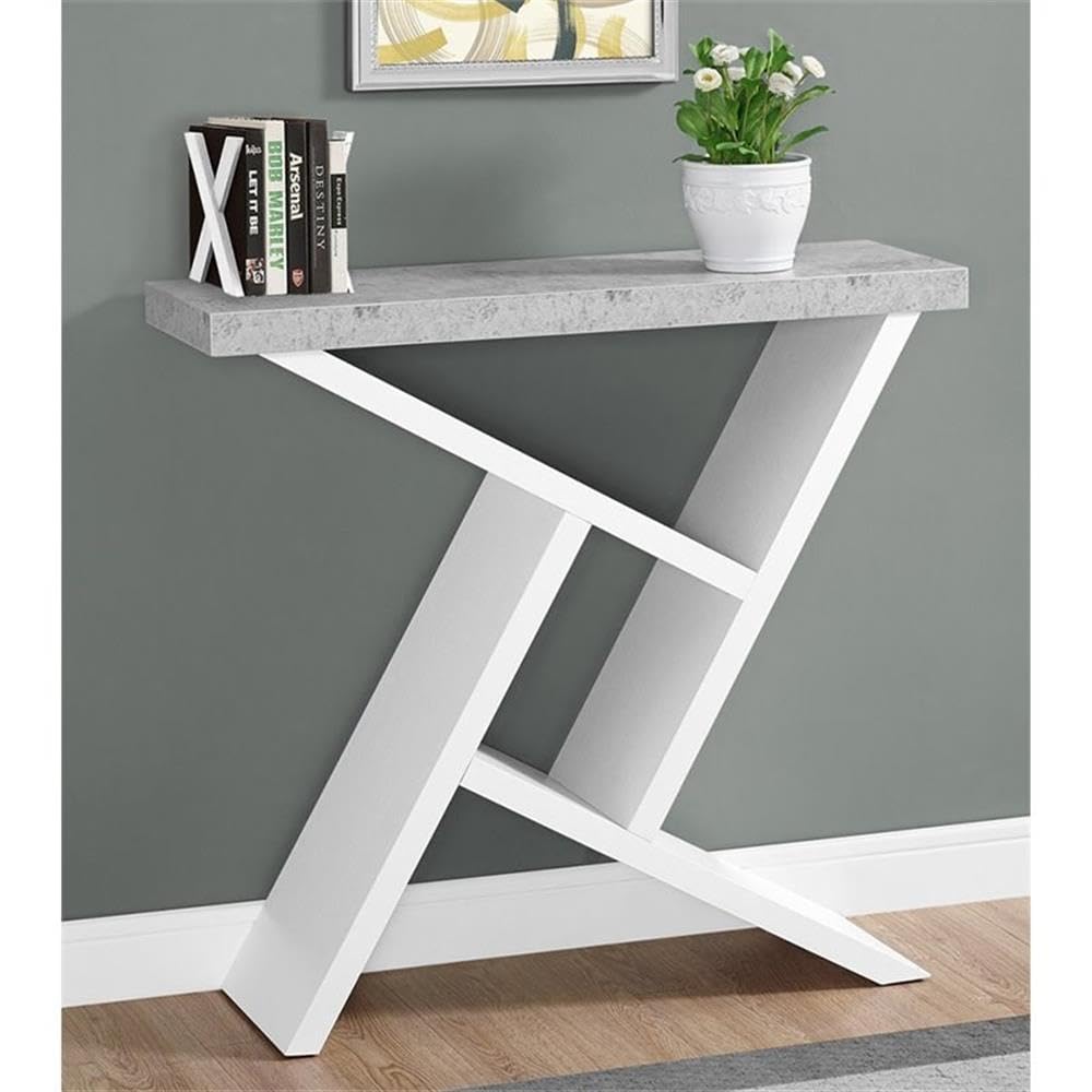 Make A Statement In Your Entryway With This Modern Rectangular Console Table With A Unique Symmetrical Base. Finished On All Sides In A Contemporary White And Grey Cement-Look With A Spacious Table Top To Display A Lamp, Pictures Or Decorative Objects. The Angular Base Can Be Used To Store Books Or Even Showcase Wine Bottles In A Original Way. A Versatile Accent Piece, Place This Thick Paneled Console Table In Your Living Room, Hallway, Entry Way, Mudroom, Or Office That Gives An Instant "Wow" The Minute You Walk In The Door!