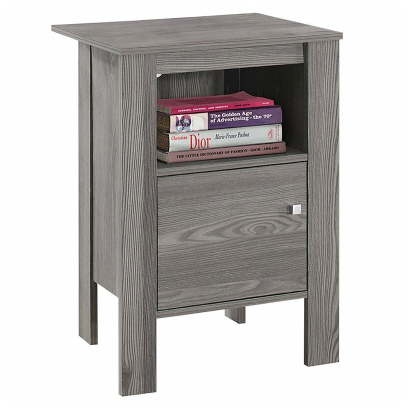 Monarch Specialties Accent Table-Grey Night Stand With Storage, 17.25" L X 14" D X 24.25" H