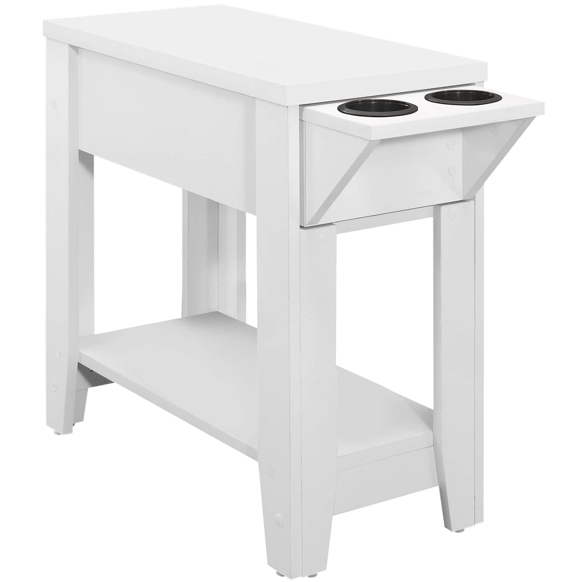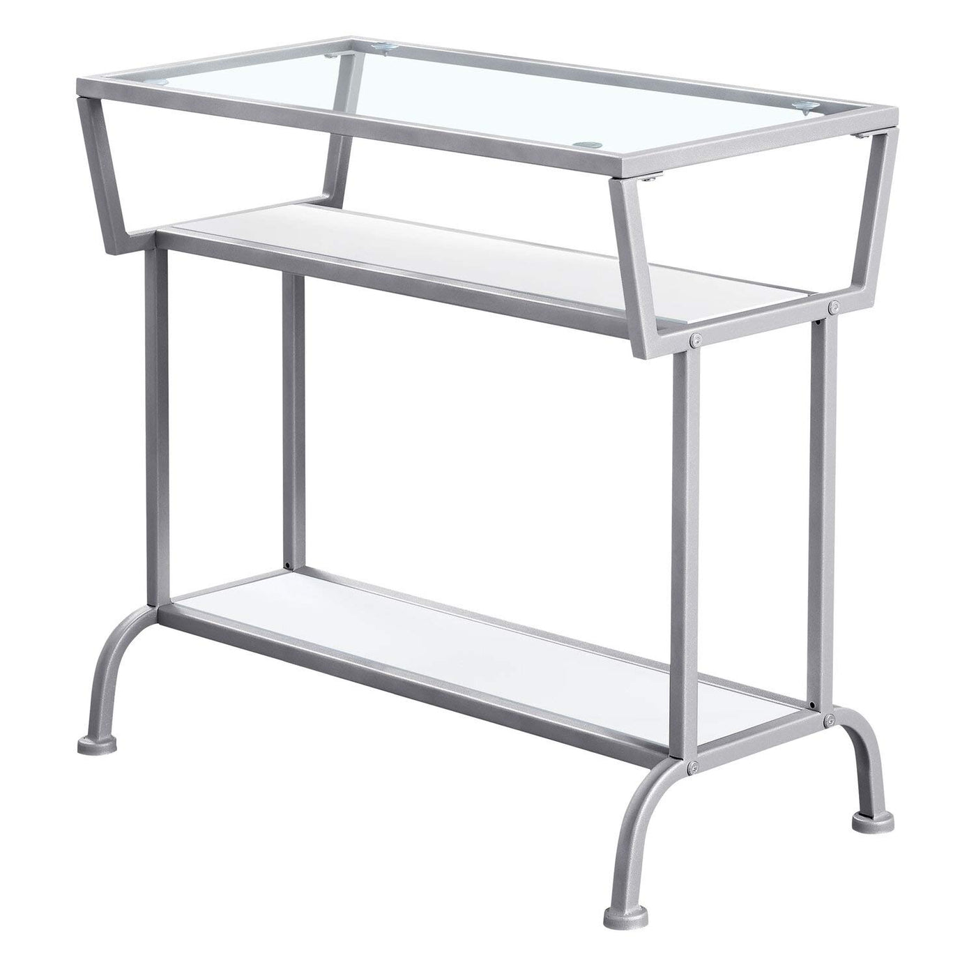 The sophisticated retro glam design of this side/end accent table brings instant style to a room. The rectangular table top is finished in a laminated glossy white over top quality MDF material, and a simple built-in square silver metal pull to smoothly open and close the spacious storage drawer. The silver metal corner accents give it a nostalgic look with a matching chrome silver metal x-design base to bring it all together. Contemporary yet classic, this multi-functional accent table can easily be used as a nightstand or as an end table next to a sofa or armchair. The compact size also makes it perfect for smaller spaces. Assembly is required.