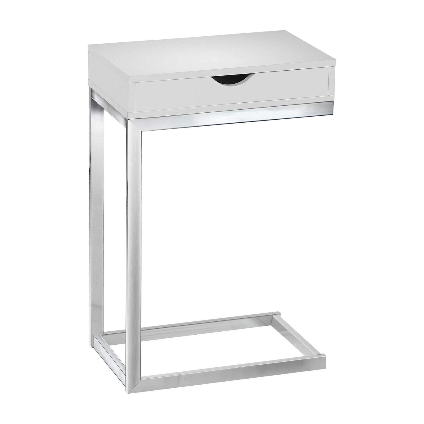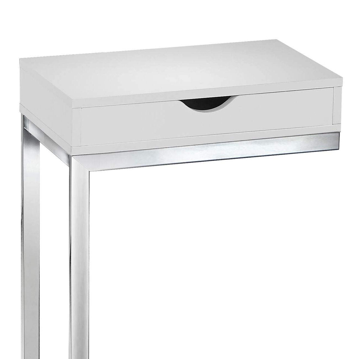 Monarch Specialties C Accent Table with Drawer-Chrome Metal Base, White