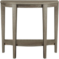 Add a stylish touch that will complete your living space with this sleek hall console table finished in a warm cappuccino. The curved, half-moon shape is complimented by the chic tapered legs. Ample surface area and a two-tiered design make this piece perfect for displaying your favorite decorative items or pictures.