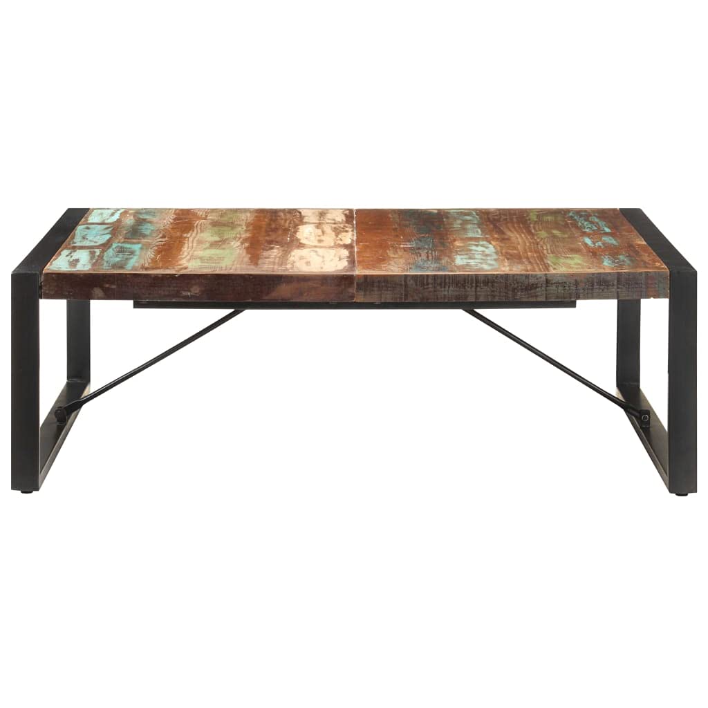 This industrial-style wooden coffee table makes a captivating addition to your living room. This couch table is made of solid reclaimed wood, sourced from joists, floors and support beams from old demolished buildings. Additionally, it is capable to consist of different types of wood like teak, hardwood, tropical wood, mango wood, etc. This means the reclaimed wood retains the characteristics of these different types of wood. Reclaimed wood is already aged, weathered and dried. Hence, they don't shrink or bend. The strong powder-coated steel legs add extra stability to the table. Important note: Colours and grains vary from piece to piece, making each piece unique; the delivery is random.