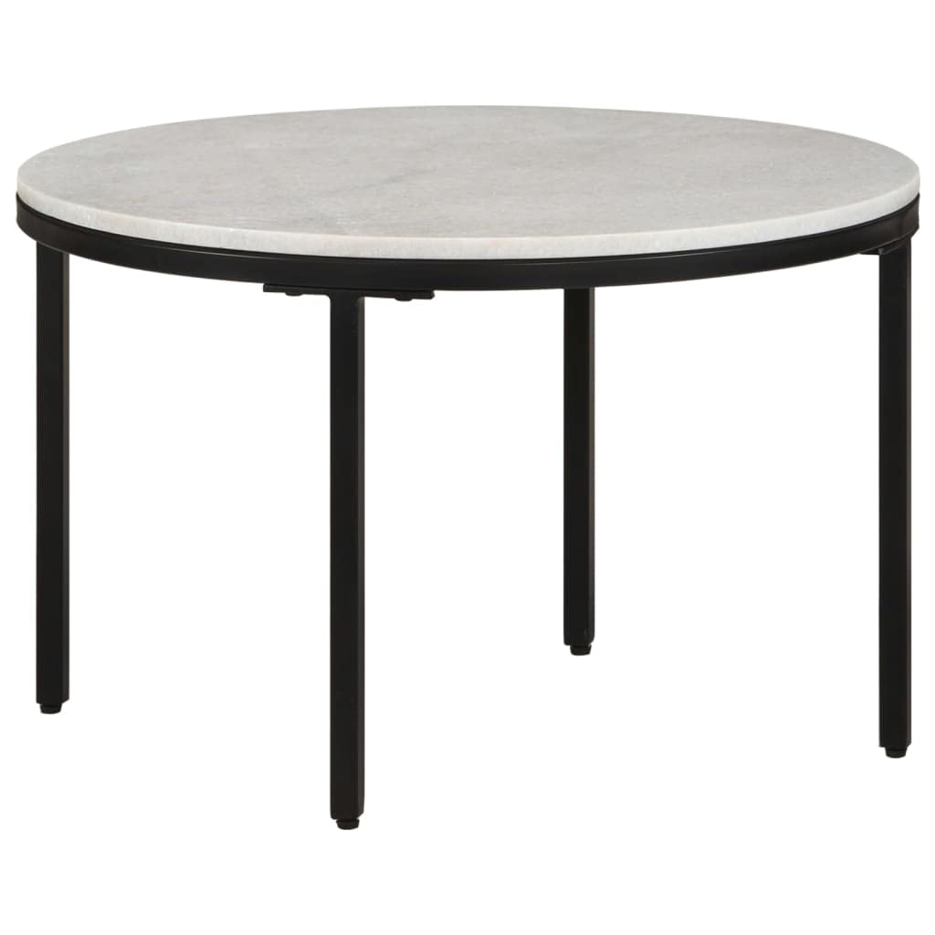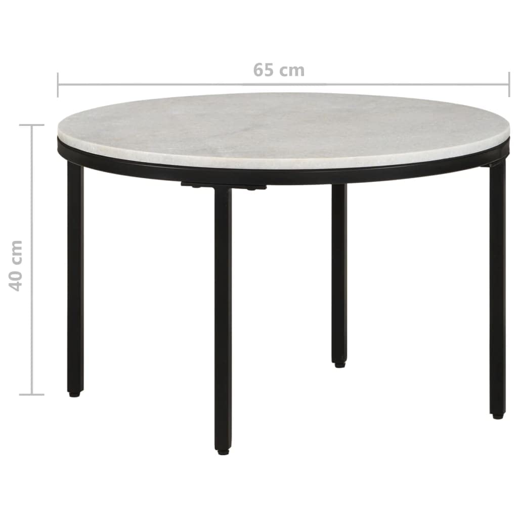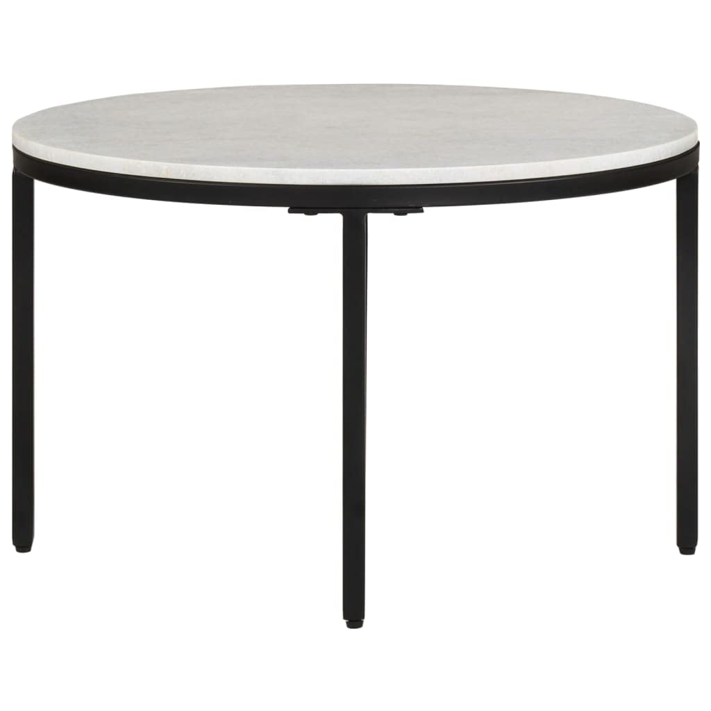 vidaXL Modern Coffee Table with White Real Solid Marble & Black Powder-Coated Steel Legs, Round Design, 25.6" Diameter