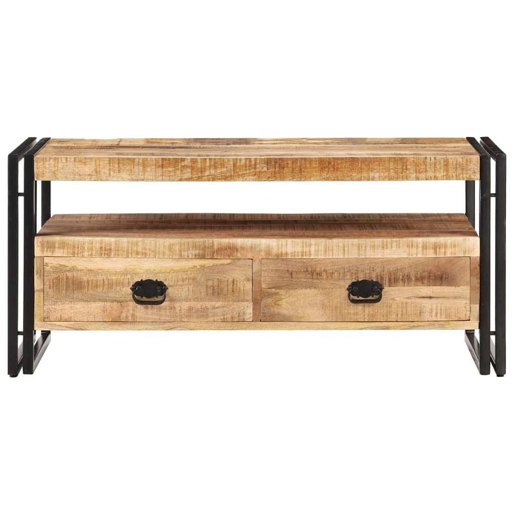 vidaXL Rough Mango Wood Coffee Table with Steel Legs, Industrial Style Living Room Accent Table with 2 Drawers and Shelf, 39.4"x21.7"x17.7"