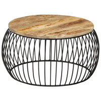 vidaXL Solid Wood Mango Coffee Table/Side Table - Round, 26.8" x 13.8" - Brown, Iron Frame - Versatile Use: Nightstand, Sofa Table, Living Room
